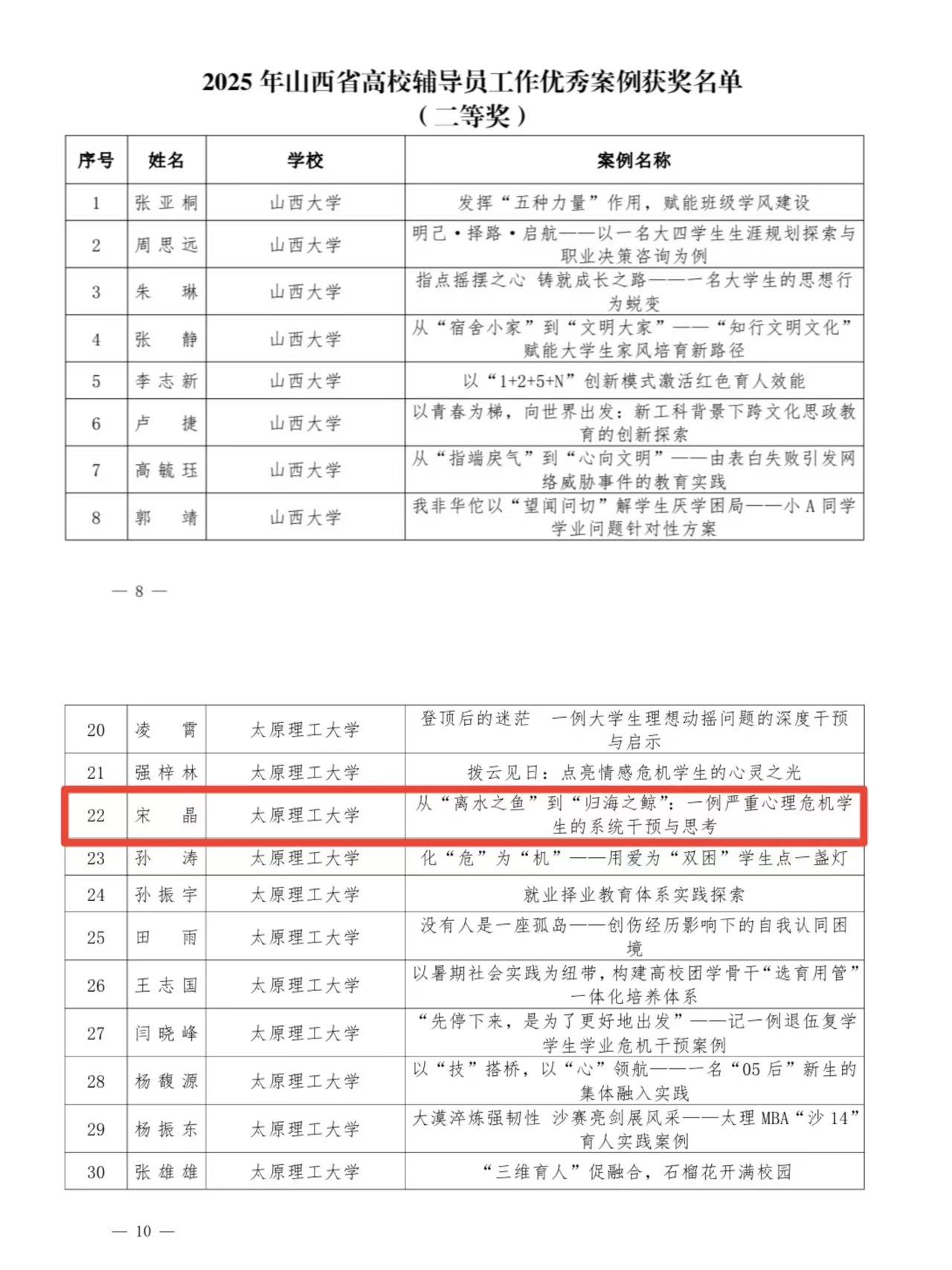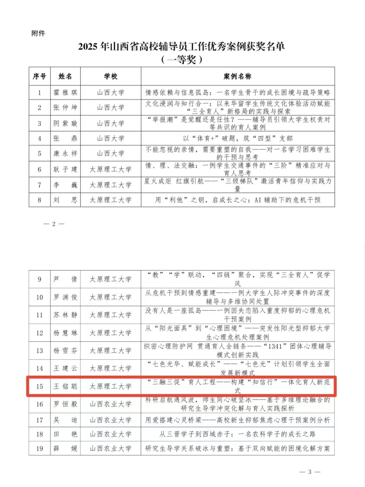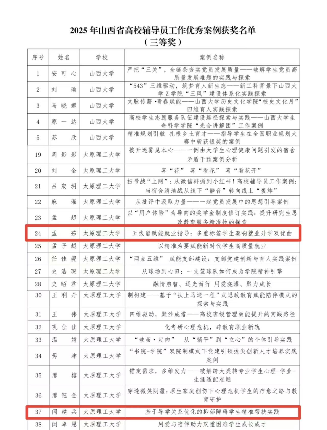 近日,太原理工大学2025年辅导员素质能力大赛圆满结束,山西省教育厅同期公布了2025年高校辅导员工作优秀案例征集评选结果。人工智能学院辅导员在两项赛事中表现突出,斩获多个奖项,充分展现了学院辅导员队伍扎实的理论功底、丰富的实践经验和良好的职业素养。