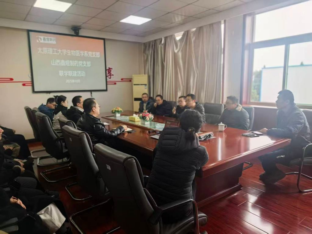 为深化校企党建交流,推动党建与业务深度融合,10 月 21 日,人工智能学院生物医学系党支部在支部书记黄棣教授的带领下,赴山西鑫煜制药股份有限公司,与该公司党支部开展联学联建活动。山西鑫煜制药党支部书记齐世雄对生物医学系党支部一行的到来表示热烈欢迎,双方围绕企业发展、学科建设与校企合作展开深入交流。