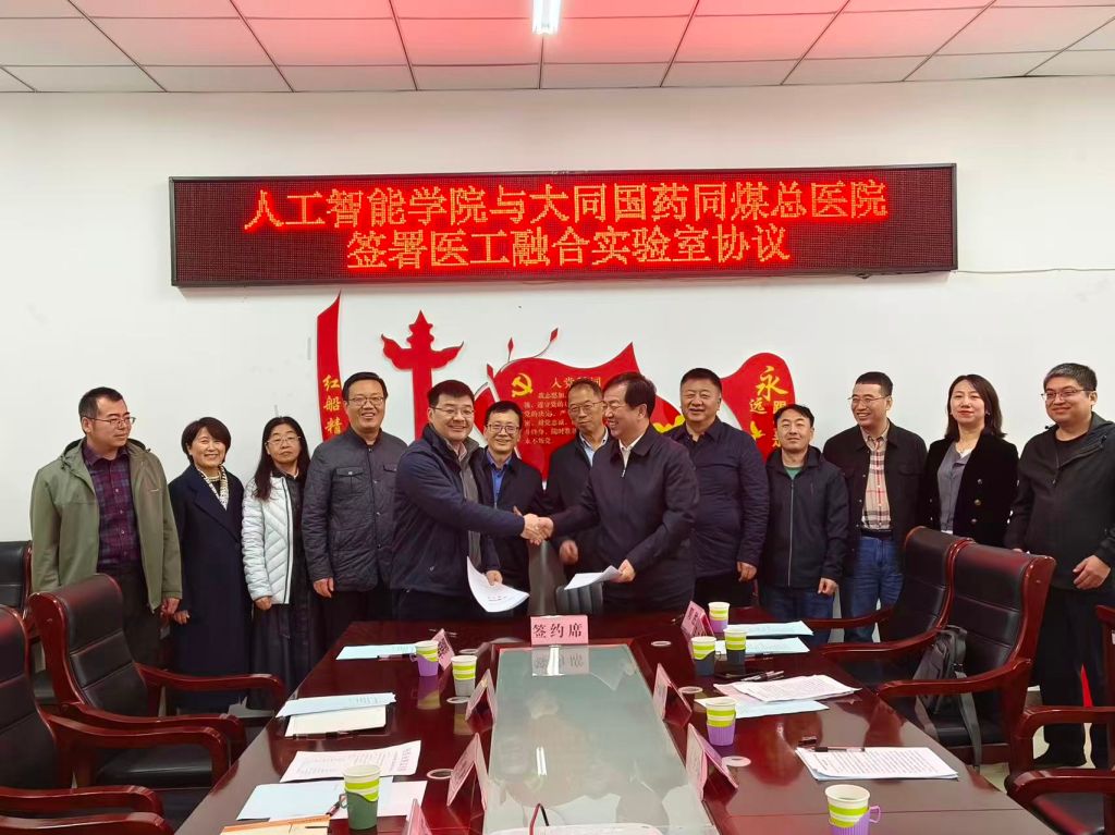 10月21日,太原理工大学人工智能学院与大同国药同煤总医院举行医工融合实验室协议签约仪式。太原理工大学科学技术研究院副院长马清亮、人工智能学院院长陈永乐教授、学术委员会主任陈维毅教授、生物医学工程研究所所长安美文教授、李晓娜教授和生医系副主任武晓刚教授六人代表院方出席。国药同煤总医院由党委书记王全印带队,副院长李雪松、科教科科长孙晨明、中心实验室主任殷金珠、康复医学科主任吕云、神经外科主任张素勤、老年病科主任郭胜、主治医师刘晓旭八人出席。