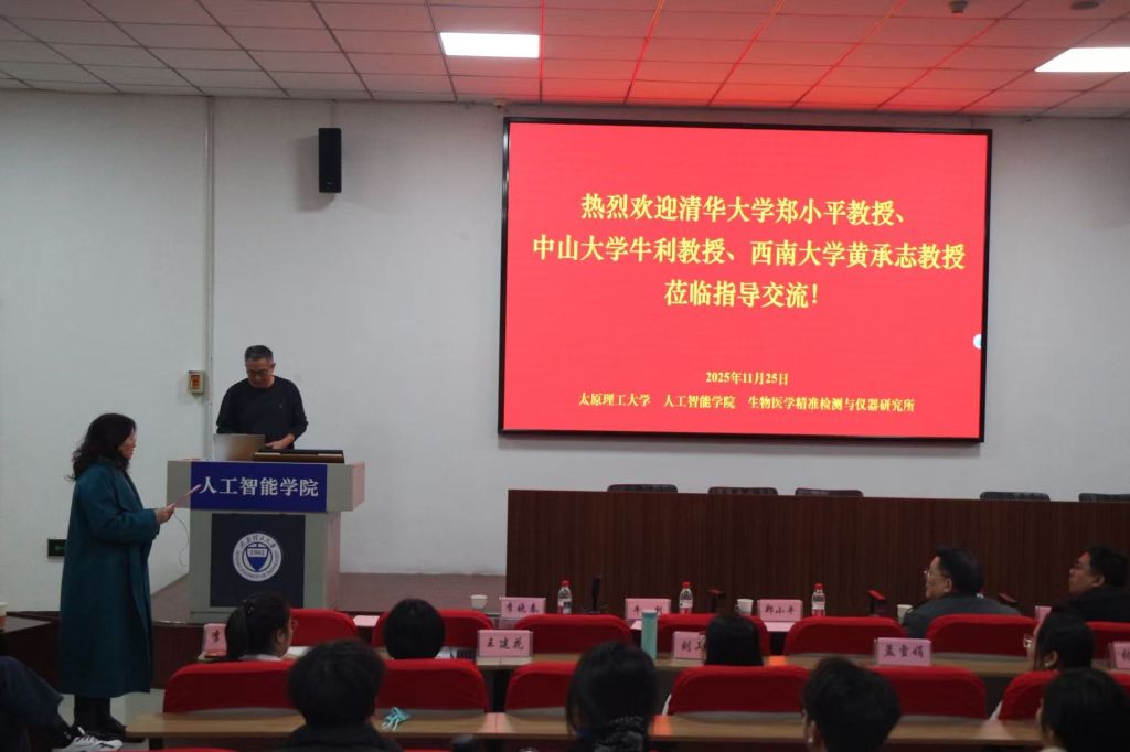 2025年11月25日上午,太原理工大学人工智能学院一层报告厅内座无虚席、氛围热烈。清华大学郑小平教授、中山大学牛利教授、西南大学黄承志教授三位国内知名学者应邀到访,为学院师生带来了三场兼具深度与广度的高水平学术报告。本次报告会由人工智能学院副院长、生物医学精准检测与仪器研究所所长李晓春教授主持,学院相关专业教师及研究生代表踊跃参会,共同畅享这场学术盛宴。